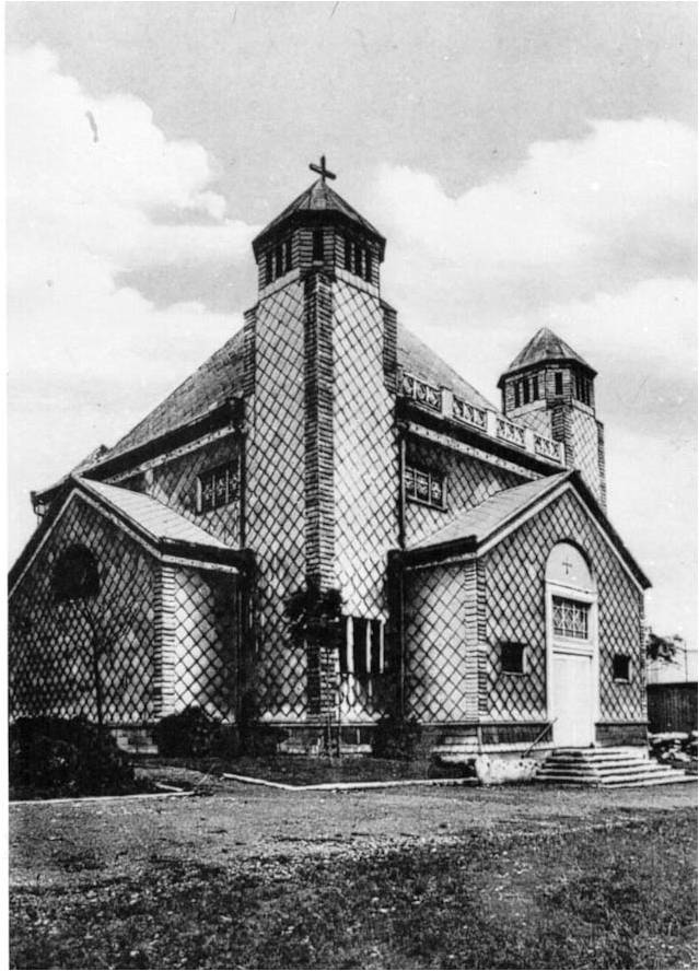 Es war ein mit Eternit verkleideter Holzbau, der während des 1. Weltkrieges als Spitalskirche bei den Schleierbaracken diente.